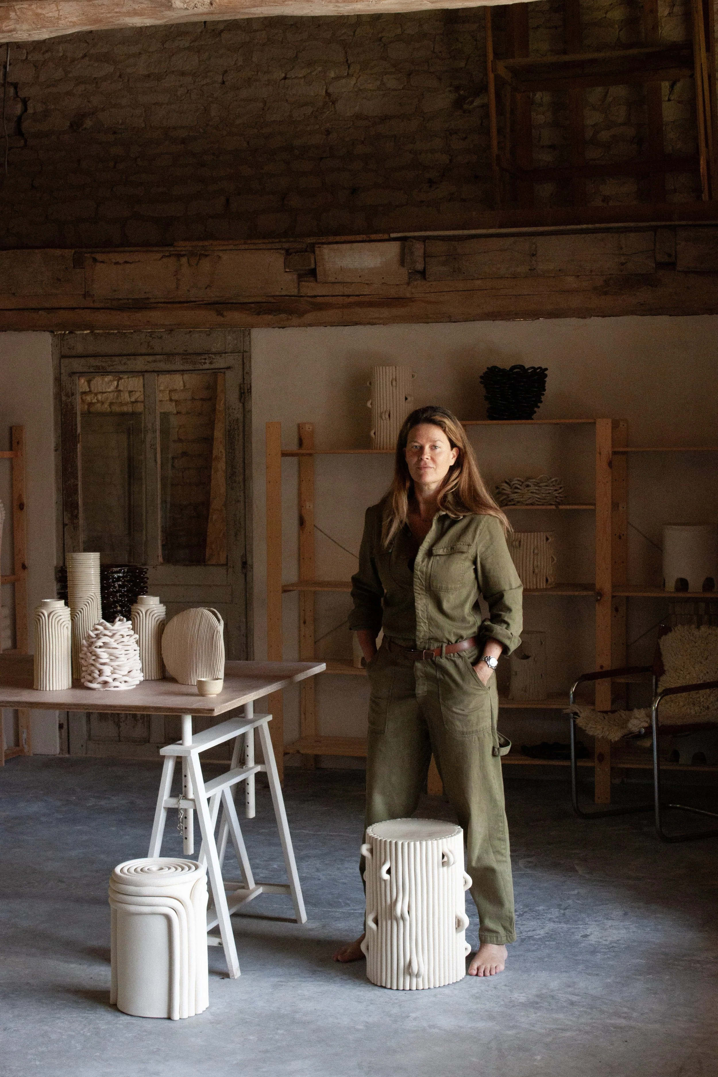 A présent, elle crée des collections d’objets en céramique et exprime sa créativité autrement. Ses objets sont toujours mis en scène, mais elle joue avec les matières, les textures ou encore les couleurs naturelles appliquées à des formes contemporaines. Ses objets sont sculpturaux , qu’ils soient utilitaires ou purement décoratifs.